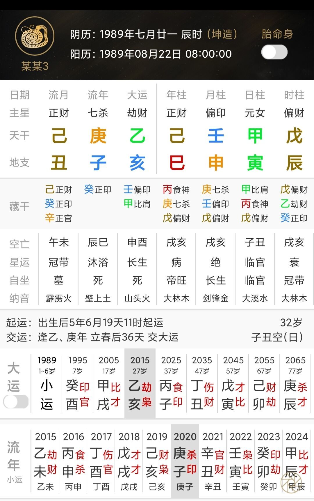 现在是乙亥大运(2015到2025年),今年2020庚子年!