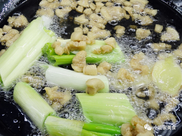 尤其是网油的味道是最重的,相对来说板油会小很多,只需要在油炸即将炸干的时候,放入一些生姜片和大葱即可,等大葱炸出香味,这样的油也会很香,而且油炸也不会发苦。