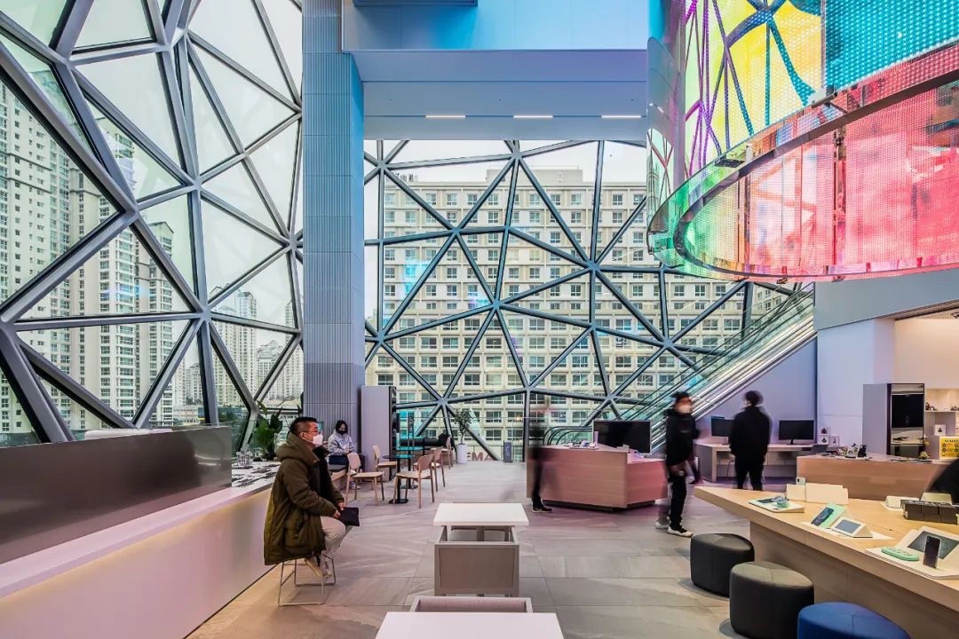 OMA事务所的新作,韩国光教百货 Galleria大楼建筑造型犹如石块一般,配合富有肌理和质感的马塞克石材外立面,让人想起邻近的水原光教湖公园的自然景色。建筑有着像经过雕琢的宝石般的多棱玻璃立面,与不透光的石材形成强烈对比。市民们可透过玻璃看到室内的零售和文化活动,而在里面的访客则获得了体验光教城市风光的一个全新观景点。由一连串渐落的平台组成的公众环路带来展览和表演空间。