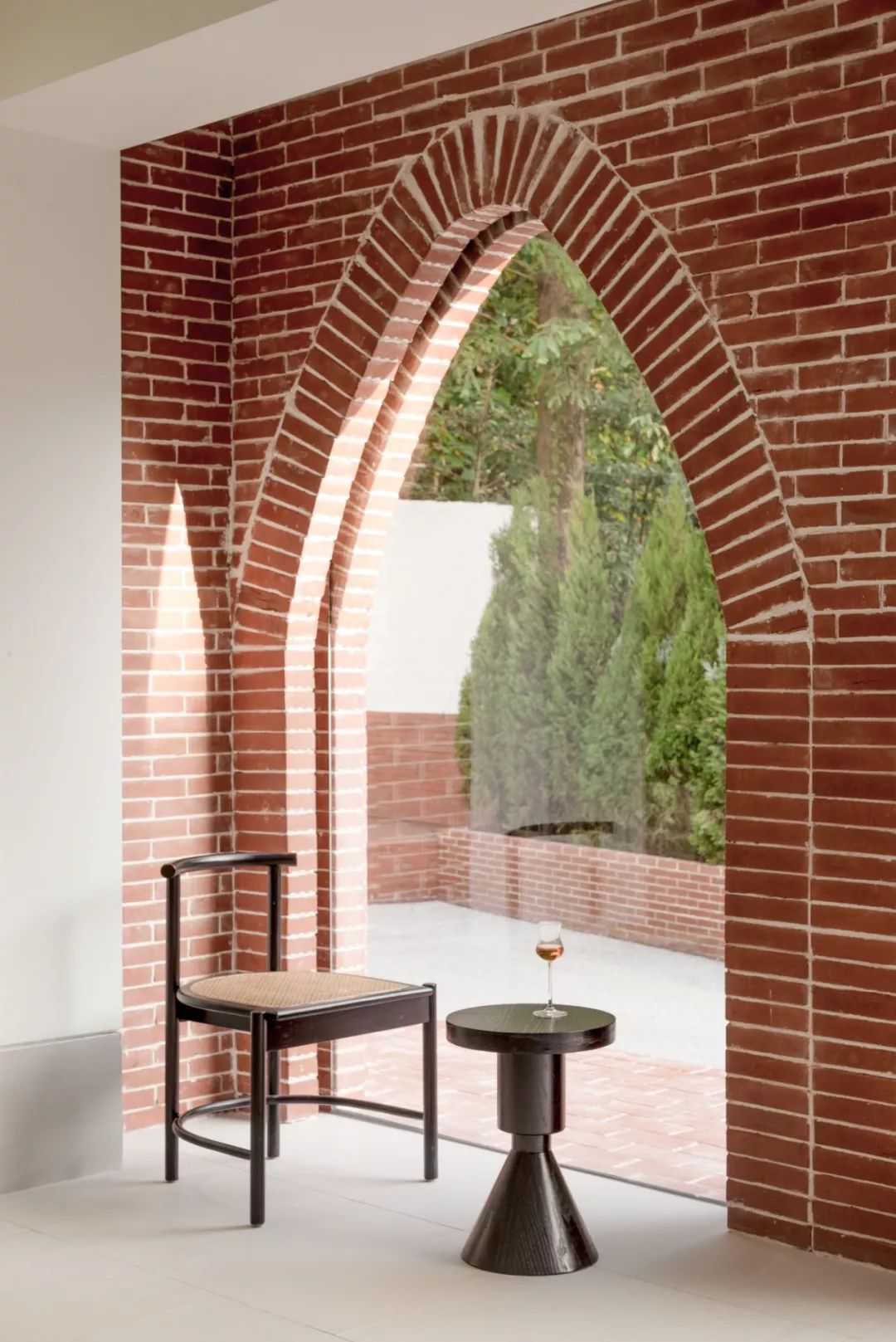 在ATMOROUND设计的LEEDO SAU咖啡店中,建筑师将墙面用作于座椅的靠背,顾客可以闲坐于此,欣赏到店铺中央的景观庭院。略带斜角的墙面,还可以帮助顾客更好地窥见庭院中的植株和天空中的云朵。通过这样的氛围营造,建筑师希望给顾问提供一个思考自省的机会。而庭院中不断变化的植株和天空中的云朵,还象征了生命循环的四季变化。
