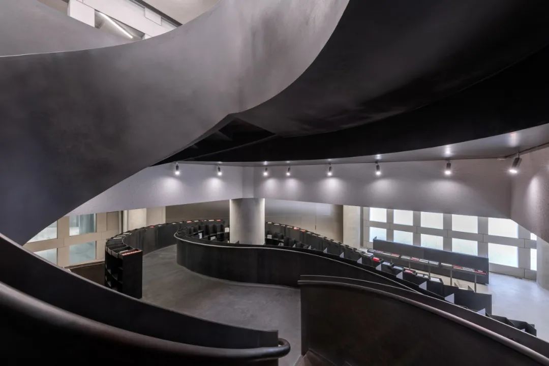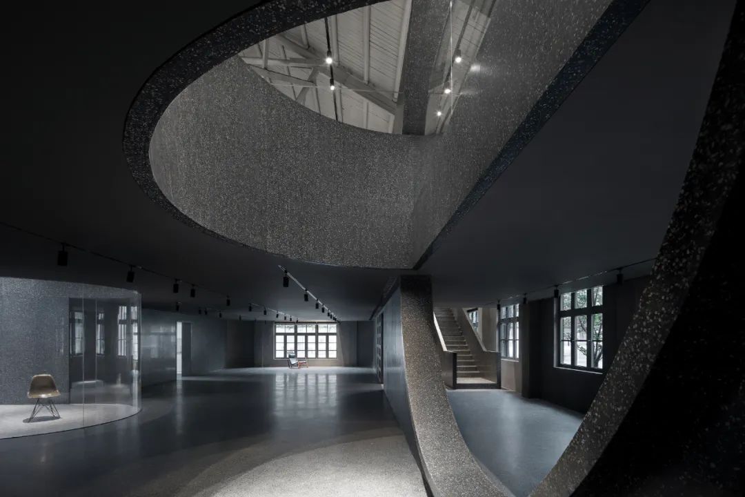 由阿穆隆设计工作室设计的的北京延庆夜阑文化艺术中心中,建筑师将空间内部墙体原始材料与直接的空间塑造手法相结合,希望可以为建筑“白开水”似的内部空间注入灵魂,并同已有建筑产生强烈的对话关系,这种对话不只是建筑与空间之间的,建筑师希望也是人与人之间的。