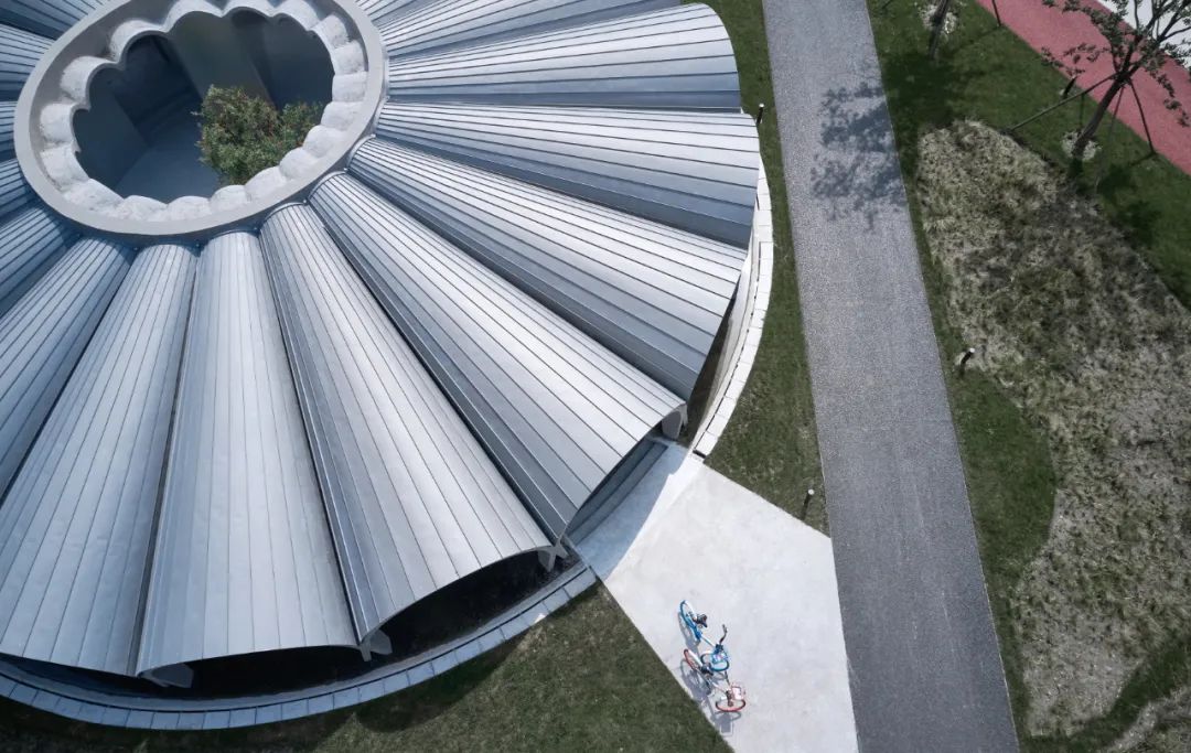 在由同济原作设计工作室设计的上海净水池咖啡厅中,功能盒体以一种离散的姿态镶嵌在新的屋盖与老的圆盘基础之间。在这样一个遍布时间痕迹的场所,建筑师有意识的规避了向心型的空间形态,希望形成一个离散的空间形式,人们可以在这片场地中没有目的地游走,徜徉,驻足,休憩。