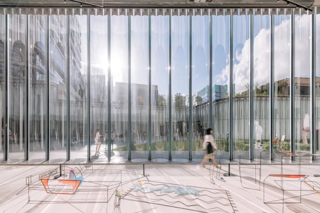 由SO-IL所设计的香港K11美术馆的立面共使用了475根玻璃管。每根玻璃管的尺寸均为直径1米,高9米,且重达两吨。从街道一侧观赏美术馆的玻璃立面,会看玻璃折射产生的一种变形且抽象的外观,使得美术馆在高密度的都市环境中鹤立鸡群。