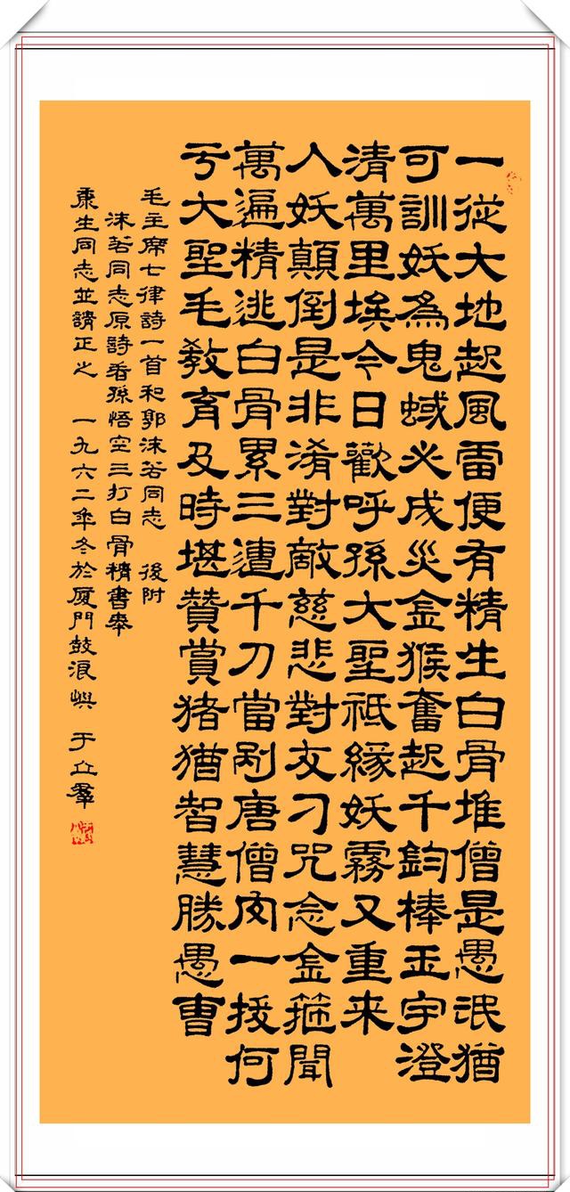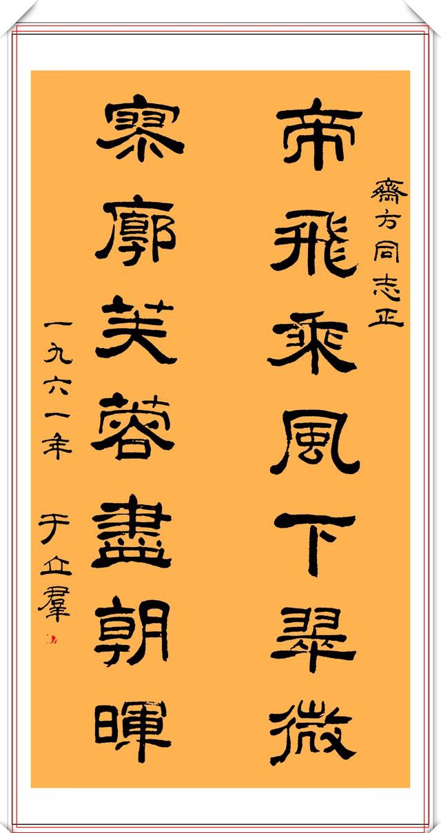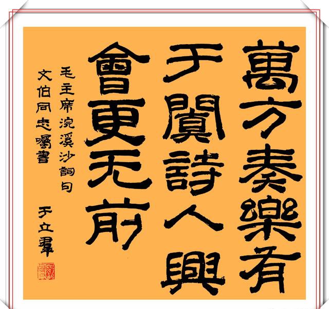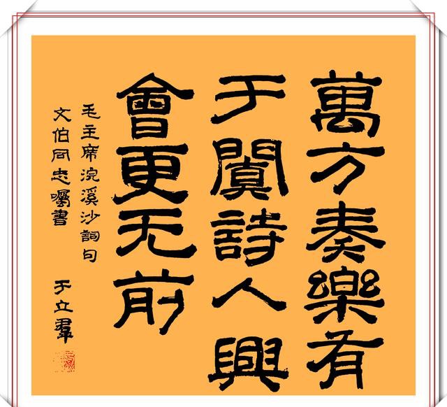 于立群的隶书能与其比肩的不多。真的是下过大功夫。看看现在所谓的书法家个个都是急功近利之徒。曾有专家说于立群的字是丑书,小编仔细地看来于立群的书法,可以说她的字不是丑书。所谓书法,就是按照一定的技法认真地写字。不论真草隶篆,脱离技法,脱离认真二字,都不是书法。君不见所有丑书,毫无技法,更不会认真写字。至于章法,各人所见不同,且毫无定式,刘先生从小认真习字,其隶书技法自成一体,且非常养眼,至于那些所谓的评论家,好多其实就是砖家。自以为是所以丑书横行。关键是写丑书不用规矩,随意而为。还自认为有特点有个性。