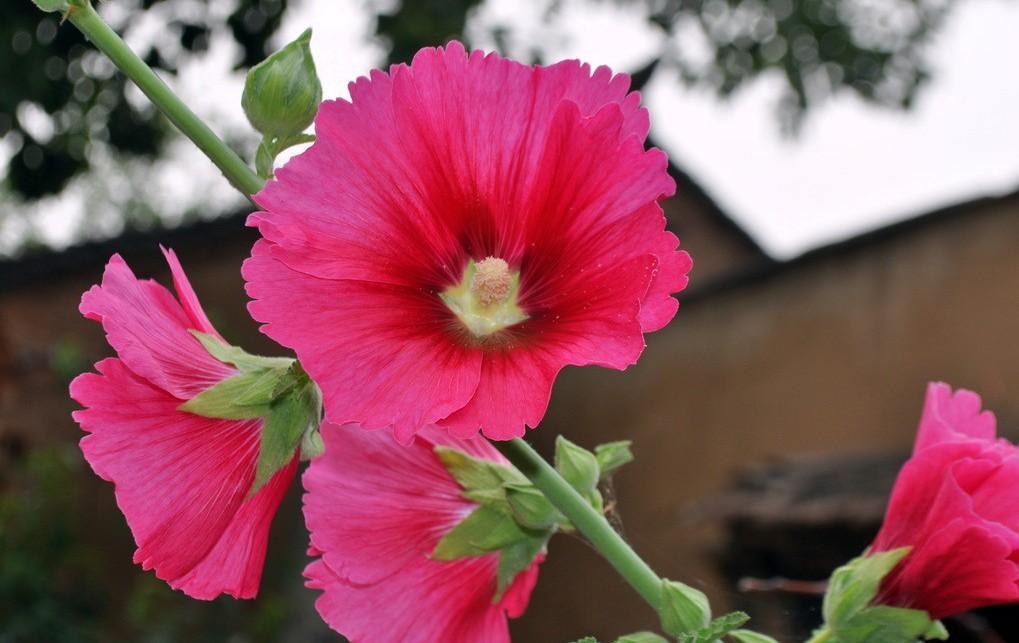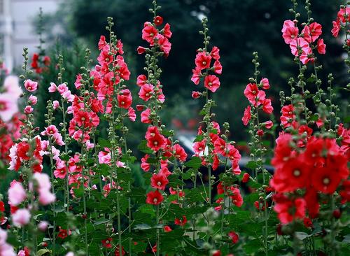 今天给大家介绍一种美丽的花卉品种-蜀葵,它还有很多特殊的名字,比如一丈红,蜀葵长势健壮能达一丈,所以名字由此而来。它还有个常用的名字叫大麦熟,它在每年的六月开放,刚好是田间小麦成熟的季节,故名“大麦熟”。蜀葵开花一串串,颜色有红色、白色、粉色等,花大艳丽,但是开得非常洒脱超然,花心一圈是深色的斑纹,别有一番风味。