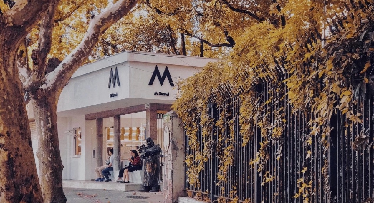 M Stand位于法国梧桐包围中的华山路店