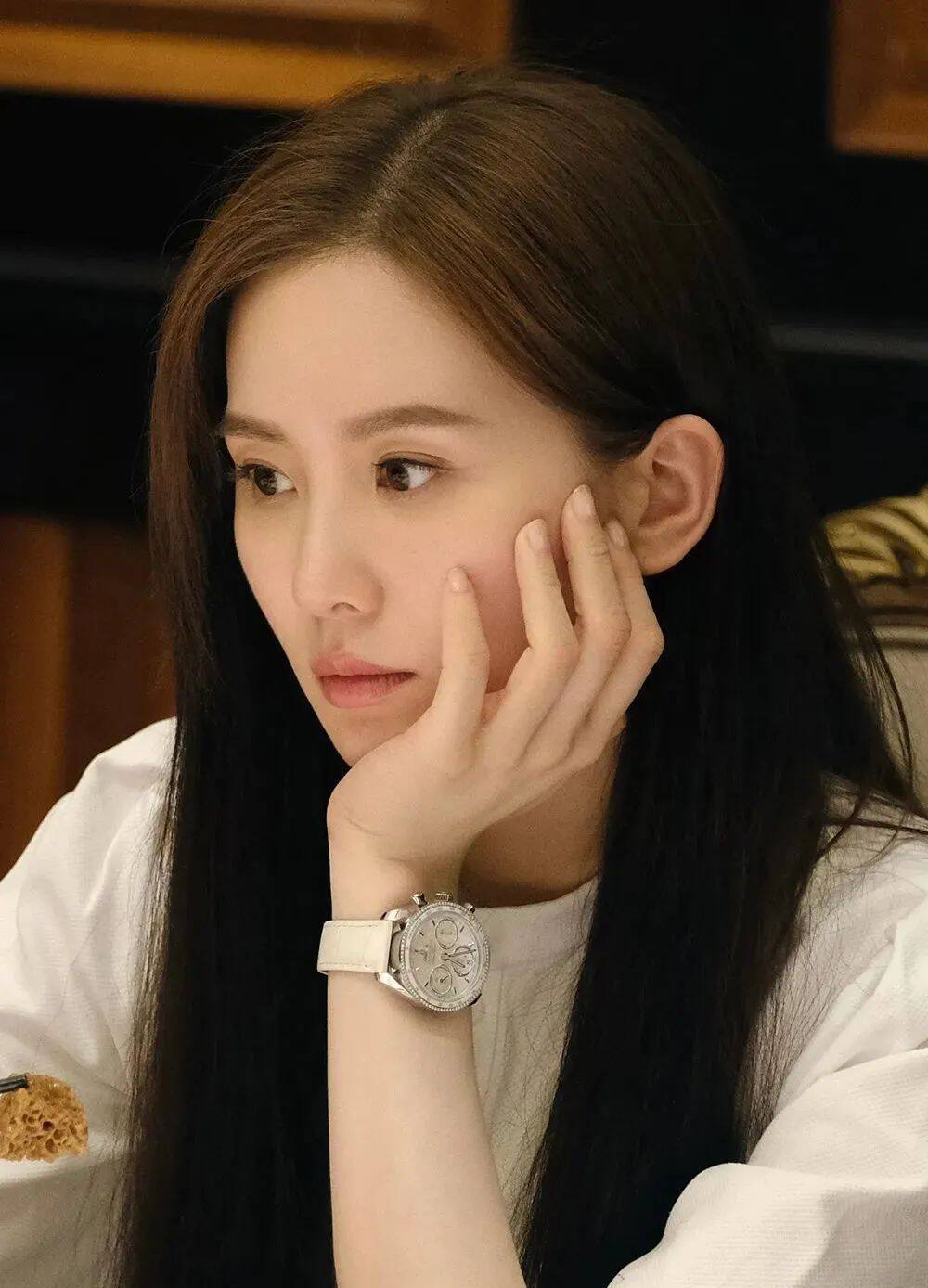 一块是她在学生时期常戴的白色超霸系列腕表,38mm的表壳直径很适合女士佩戴,风格演绎很到位,很衬她的清纯形象。