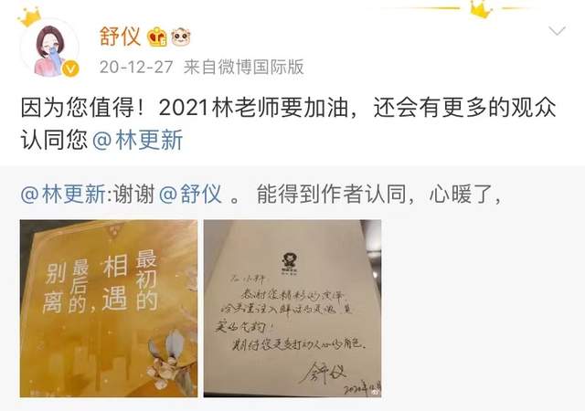 作者舒仪感谢编剧保留了男女主的人设,也保留了故事本身最根本的内核。她对演员们的表现赞不绝口,感谢他们赋予了笔下的角色生命。
