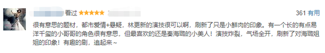 网友追完剧后,都自发地为"小香芋"打call:"很有意思的题材,都市爱情+悬疑,林更新的演技很可以啊,刷新了(他)只是小鲜肉的印象。""开篇两集的主要人物性格就完全立住,每个角色都层次分明。"