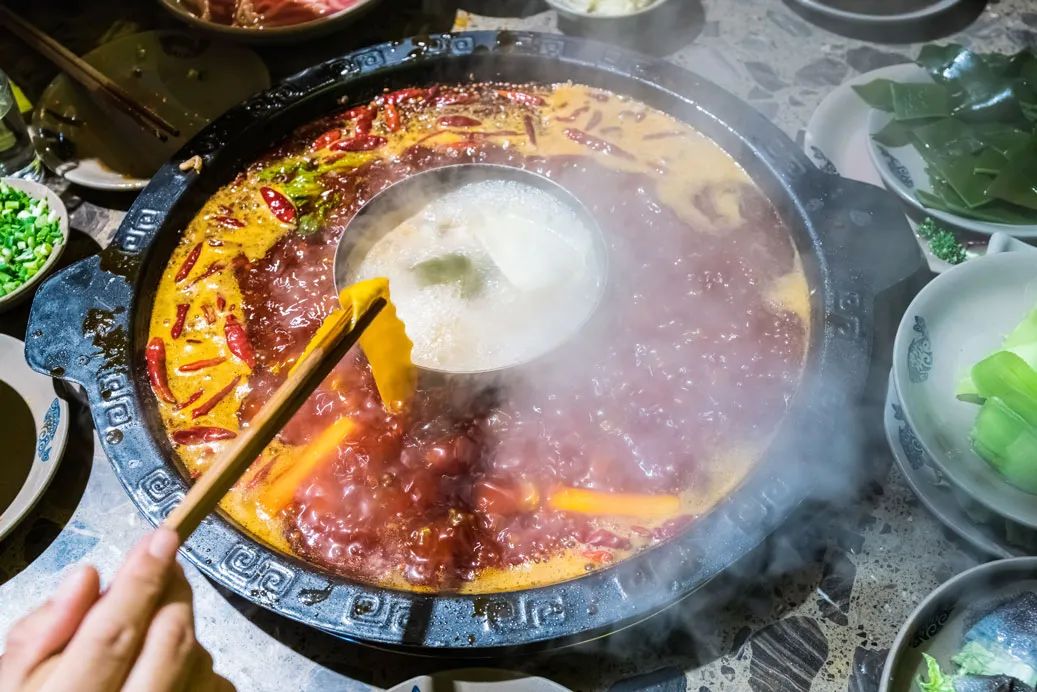 重庆火锅名扬天下,属全国人民耳熟能详的特色美食,到此行走古道后当然不能错过。需要说明的是:重庆火锅又称毛肚火锅或麻辣火锅,主要原料采用牛毛肚、猪黄喉、鸭肠、牛血旺等。这是一种起源于明末清初的重庆嘉陵江畔、属于秦巴古道上朝天门等码头船工纤夫的粗放餐饮方式,他们没想到日后这种饮食方式大行其道、风靡天下,而重庆也成了麻辣火锅的发源地。