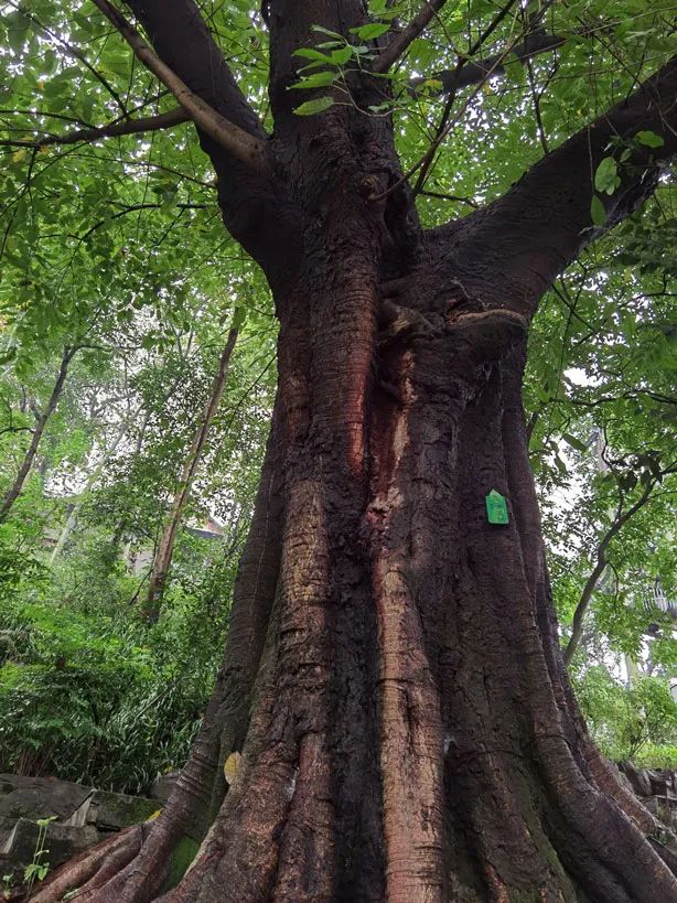 黄桷古道上多见黄桷树的身影。黄桷树是桑科榕属落叶乔木,又名大叶榕、黄葛树。这种具有“气生根”的植物可以直接从空气中吸收水分,因而生命力极强。生长在石坎、石崖、城墙上的黄桷树可以盘根错节地紧紧扎进石缝里,严丝合缝地与石体融合。黄桷树是重庆市的市树,古道亦由此得名。自古以来,重庆地名以黄桷冠名者不少,北魏《水经注》载:“江水又东经黄桷峡(铜锣峡)。”宋《图经》云:“涂山之足,有黄桷树,其下有黄桷渡。”而本地区至今仍有黄桷垭、黄桷坪等地名。