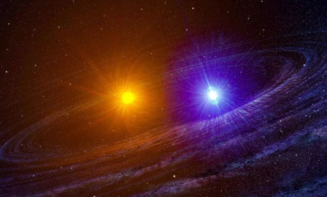 每一个都接近于地球的大小,重量和太阳一样,但它们的轨道彼此间却非常相近——地球和月球距离的五分之一。它们每秒会移动几百万千米。