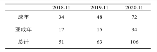 李忠秋教授还提到南京大学校园猫数量在两年内的暴增,即在两年内翻了一倍 (表一) [6] 。他认为这说明流浪猫在投喂及有爱心人士救助的情况下种群数量能够 “欣欣向荣”,用以支持 “不投喂” 的结论。