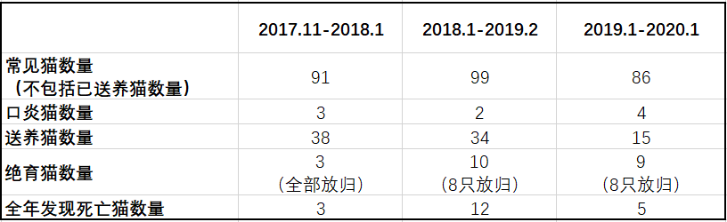 表一 南京大学校园猫数量(来源:一席演讲)