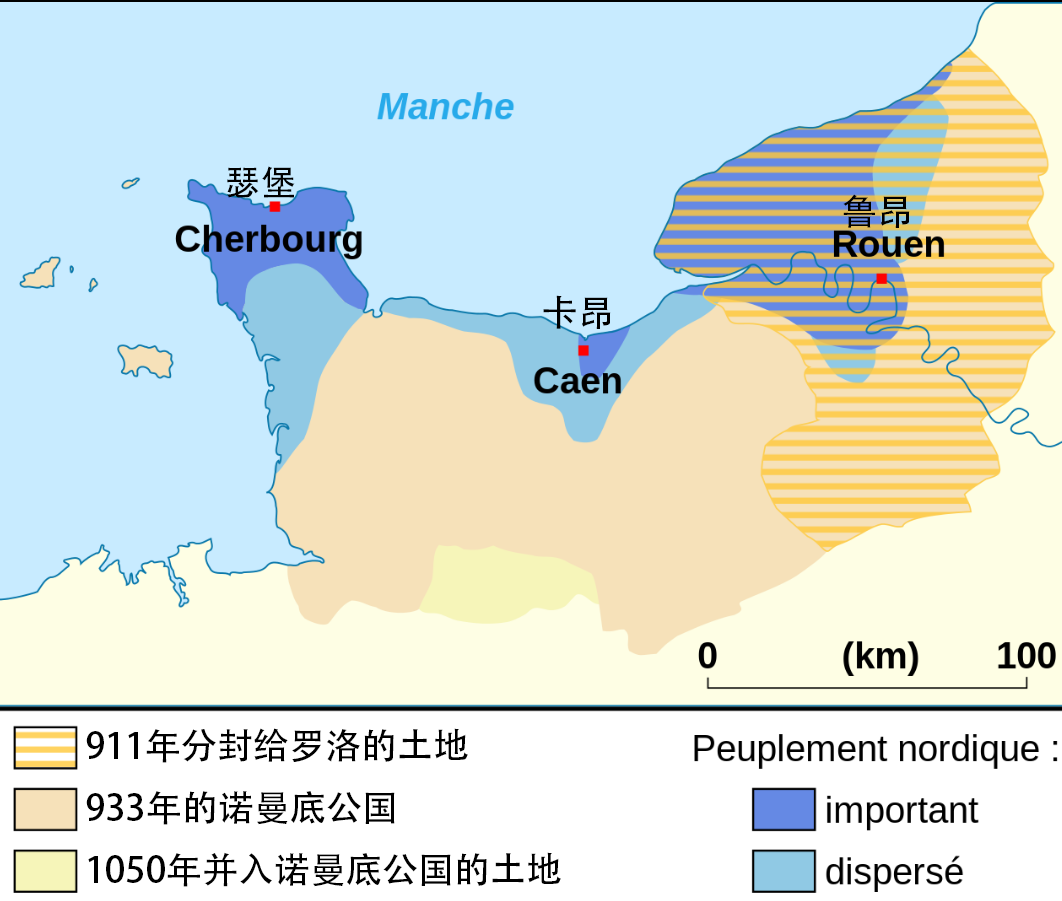 最终在公元911年,法兰克国王与诺曼人首领罗洛在巴黎签订城下之盟,将塞纳河口的大片土地正式授予诺曼人,建立诺曼底公国,成为法兰克王国名义下的一个封臣。22年后,法王又将海峡群岛赠予了罗洛的继承者。