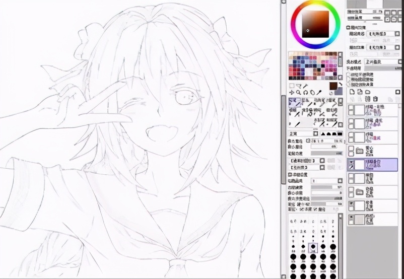 关于线稿的其他变化。其实线稿可以进行局部彩色的渲染及进行高斯模糊的处理(详