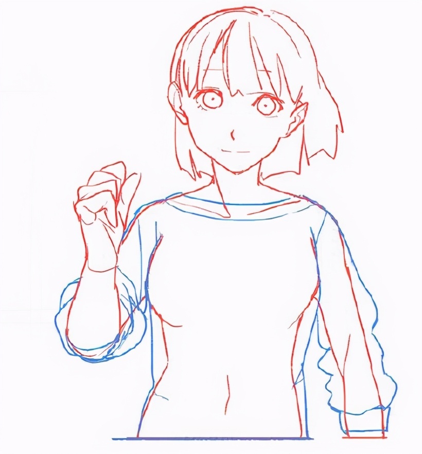 先画出胳膊的结构,从肩膀的位置到手指。一整套下来都要概括清楚