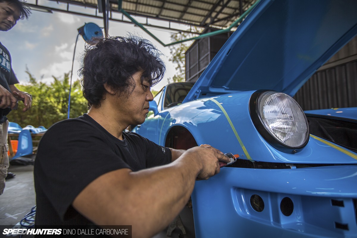 上世纪90年代,中井启跟随Rough World crew车队使用丰田AE86参加漂移比赛,更宽的轮胎,极端的车轮负倾角和宽体翼子板让RWC车队的赛车在比赛中脱颖而出。作为车队技师,中井逐渐积累了改车的手艺,相比AE86,他更钟情于保时捷911,一次偶然的机会,他购入了一台破旧不堪的930代911,计划改装成漂移赛车,经过数月的努力,第一台宽体911成功驶上赛道,这台车很快在日本改装届引起热议,许多人找中井改装老款911,于是他成立了属于自己的改装公司,并命名为RWB。