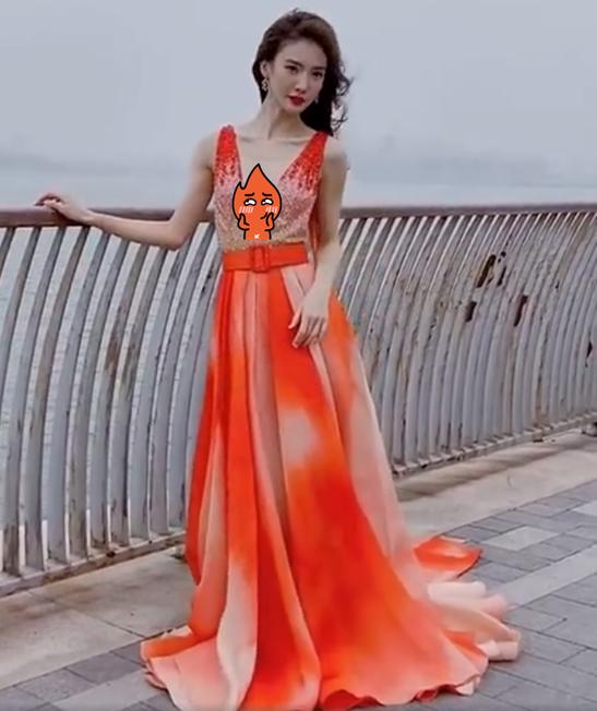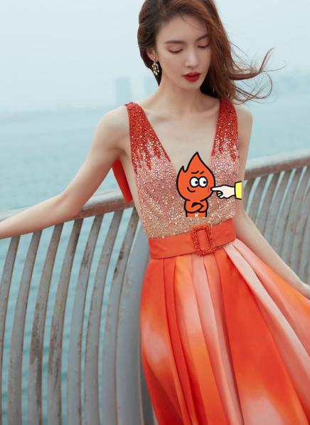 等成片出来后,可以看到金晨身穿红色吊带礼裙,上半身深V大领口的设计开叉到肚脐处,秀出优越肩颈线条,露出天鹅颈和傲人锁骨,骨感身材一览无余,看起来十分迷人。