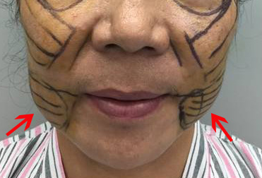 对于这个部位,我目前的做法是:第一,局部做光纤溶脂,把多余的脂肪去掉一部分,利用其组织收缩的特性,进一步同深部组织吸附,同时做SMAS筋膜层的收紧,慢慢的一层一层的将其收紧,然后缝合平整。第二,将皮肤做以广泛的剥离,让后往上提拉。