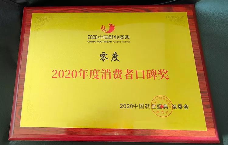极具价值的干货分享之后,本届盛典最具参考价值的年度评选结果重磅揭晓。此次评选共有380家企业参与了鞋业盛典评选,经过各方数据的综合评估和专家顾问团队的慎重臻选。最终厦门零度尚品电子商务有限公司荣获2020年中国鞋业盛典·造浪金奖“2020年度消费者口碑奖”,赢得了行业的高度认可。