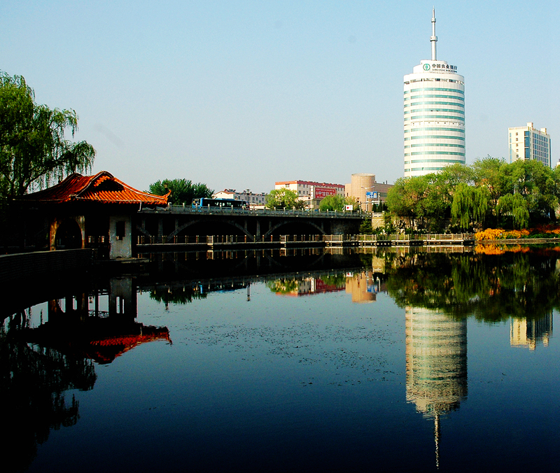 白云纷扬,绿柳风摇荡。多了金光。都因昨日雨声响,把雾霾灰尘收藏。遍地明亮。