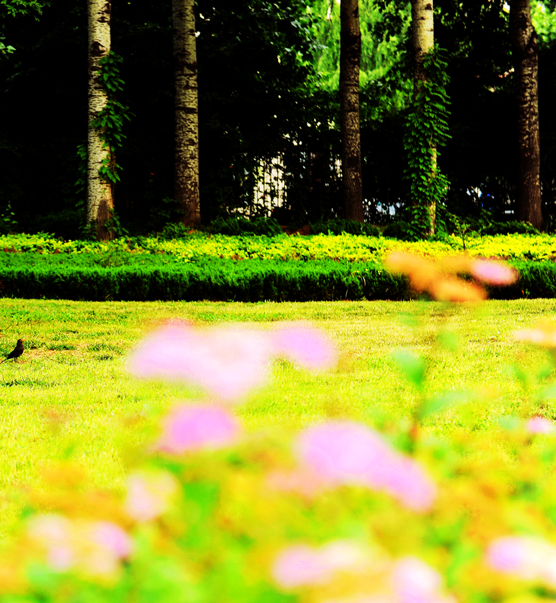 阳春三月鲜花扬,小鸟亭立赏芬芳。十年树木参天长,谁人栽下这栋梁?定会家族旺,还会让人念想。
