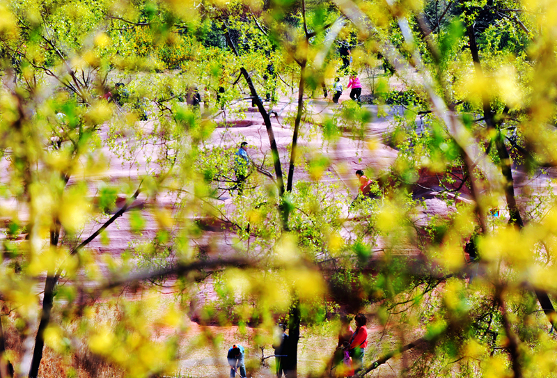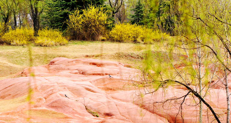 晴空万里春风扬,千枝万叶拥吻响。红石亿年仍彻唱,极目胜景天地旷。风光,风光,荡气回肠。