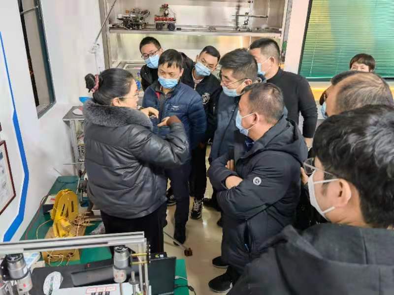 中国山东网讯 1月14日晚上,丽水市经济和信息化局调研员应自力、丽水市开发区经贸局副局长吴姝静及丽水汽摩配行业协会会长韩青率浙江兄弟之星汽配有限公司、浙江品超汽车零部件有限公司等十几家企业负责人来丽水学院 “机电创新实践基地”考察,丽水学院工学院副院长张蕊华及智能制造团队老师、机电创新实践基地学生对考察团的到来表示热烈欢迎,并进行了细致的接待工作。