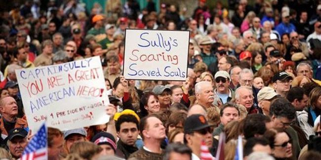 迫降成功后的第9天,成千上万的人聚集在加利福尼亚州的丹维尔,欢迎萨伦伯格回家。