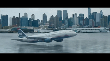 此时,萨伦伯格以惊人的技巧驾驶飞机,以几乎失速的125节最低速撞击河面。