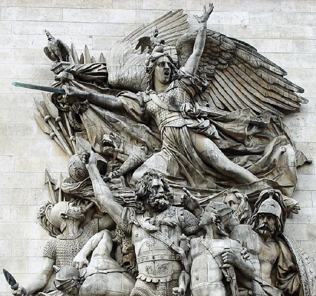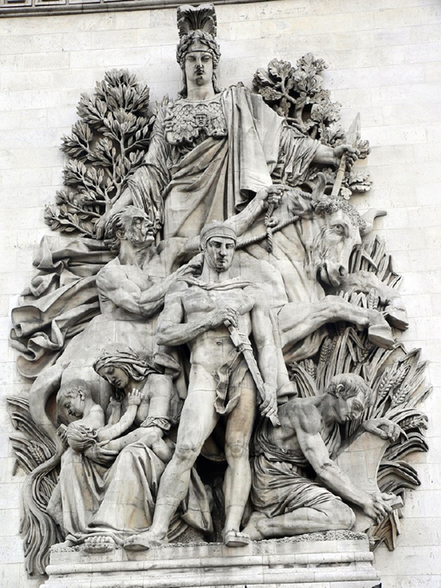 《马赛曲》这组雕塑是著名雕塑家弗朗索瓦·吕德的作品,也是凯旋门最负盛名的雕塑。