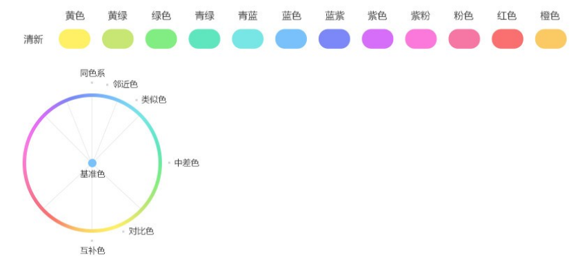 选择色调其中一种色彩作为主导色,以主导色为基准色,根据数据的展现需求,按色环角度选取另一种色彩。例如数据展现要求温和些的,可以选择类似色搭配,数据展现要求强烈的,选取色相对比高的色彩搭配。