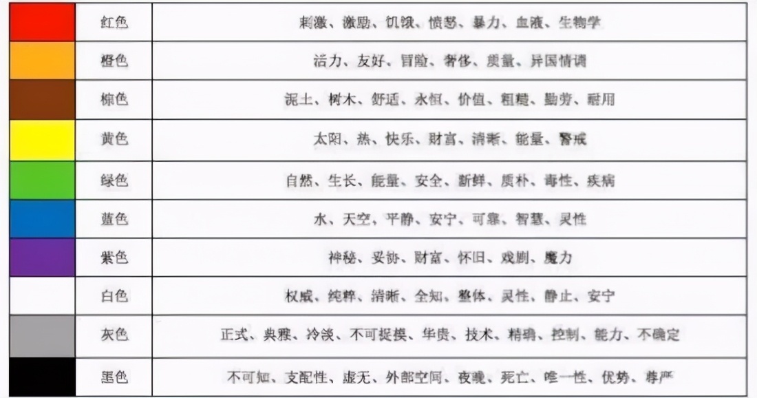 这个是我自己看了美国视觉设计教材后摘下的,也就是大家常说的色彩的内涵,色彩传达的意义。
