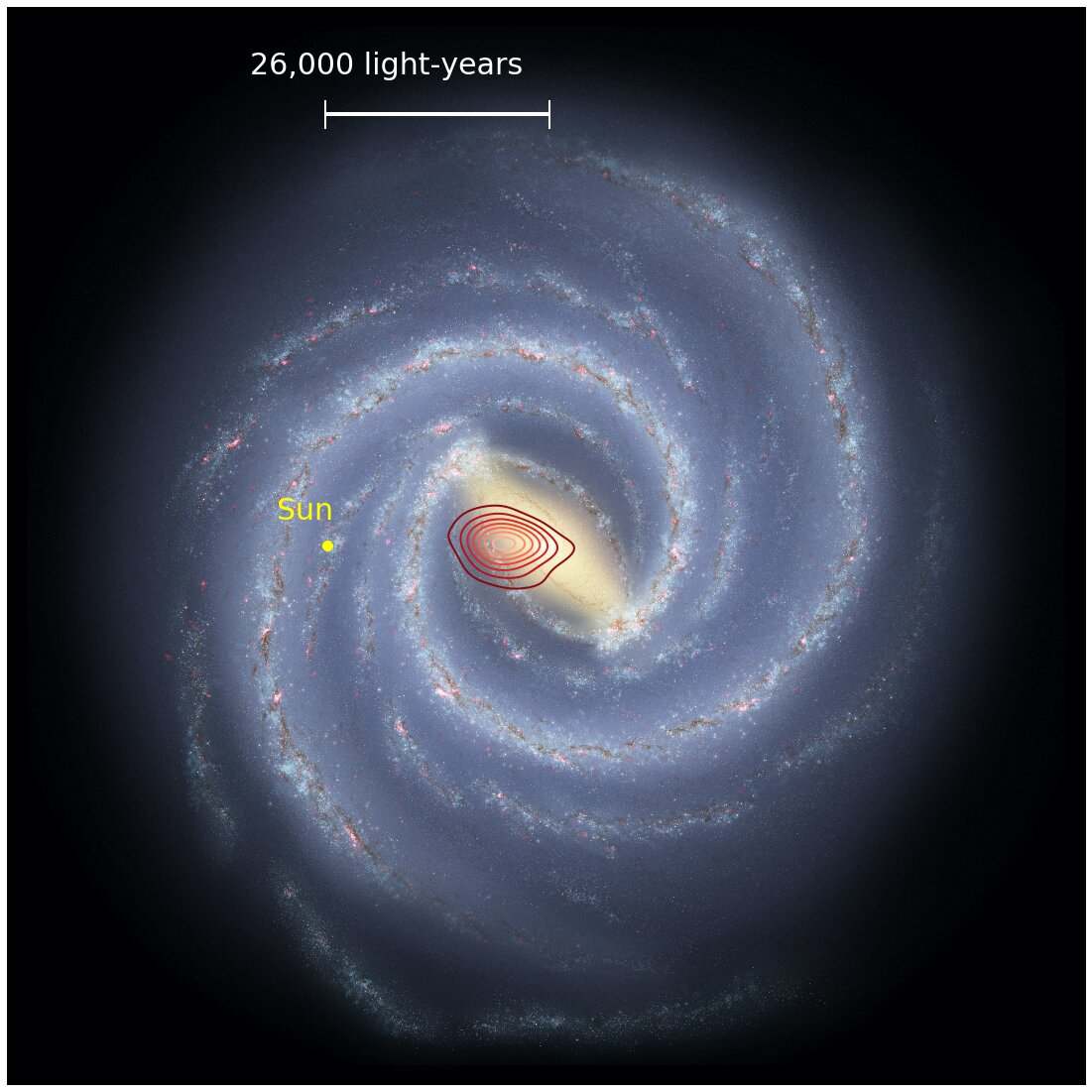 图注:银河系中央区域的倾斜盘鸟瞰图。图源:威斯康星大学麦迪逊分校-Dhanesh Krishnarao