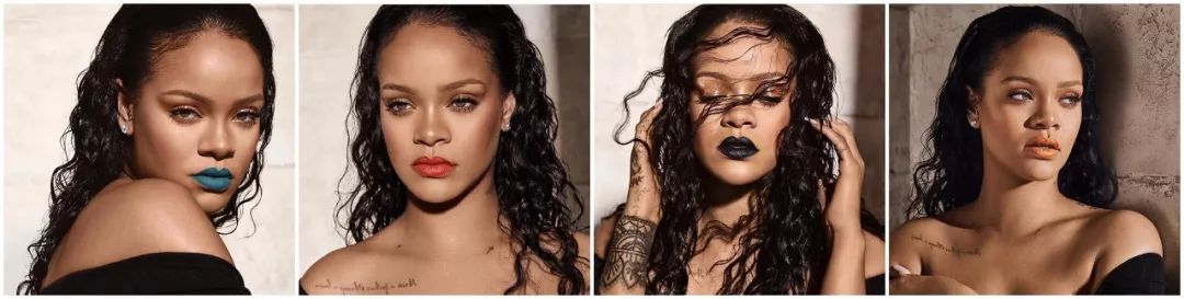 蕾哈娜当然没那么乖巧,仅仅一个正红色不够,戏剧化的唇釉颜色,都出现在Fenty Beauty里面。