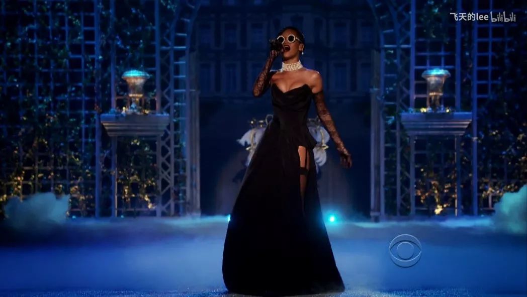 当晚另一套黑色性感长裙,珍珠墨镜,超A的复古名伶,算是我最爱的造型,表演超酷,网上搜搜视频来看,绝不后悔。
