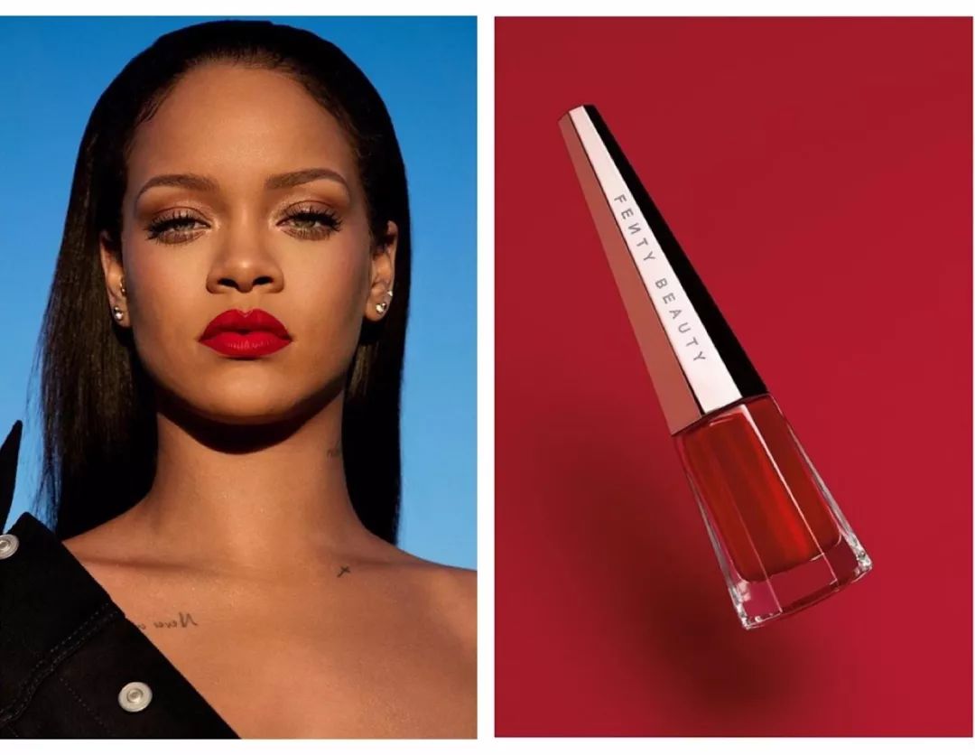 首波推出的彩妆品牌Fenty Beauty是商业上最成功的,美妆爱好者早就如数家珍了吧,高光、修容、眼影、口红,都是彩妆爱好者的心头宝,正红色的戚薇同款唇釉,价格只有180元左右,比许多主流品牌口红还便宜。