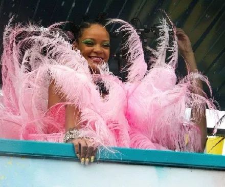 一身服装设计师David Laport定制的粉色羽毛裙,酷似一只火烈鸟,助阵家乡节日,还上了热搜,其实这身打扮对于蕾哈娜来讲,真是一点不夸张,但更值得热搜的应该还是她这几年热衷于的公益事业啦。