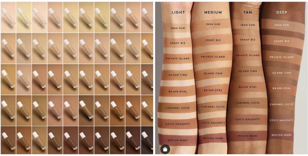 Fenty Beauty推出了40个色号,柜台上深色号的总是最先被抢购一空,可见市场需求有多大,《时代》杂志将此评为2017年25项最佳发明之一。