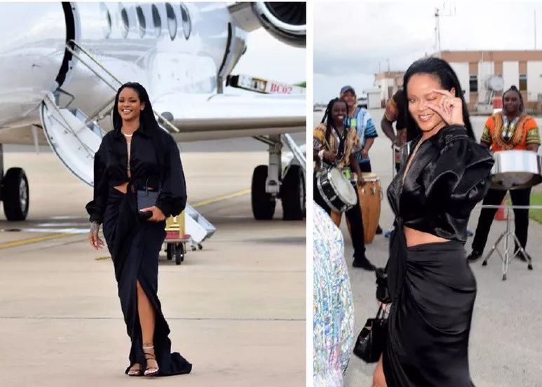 巴巴多斯传统节日“丰收节”,Rihanna都会盛装出席,她曾经身穿Collina Strada黑色衬衫裙,手拿爱马仕mini包包,超模一般的步伐,从私人飞机上走下来,一副衣锦还乡的气派。