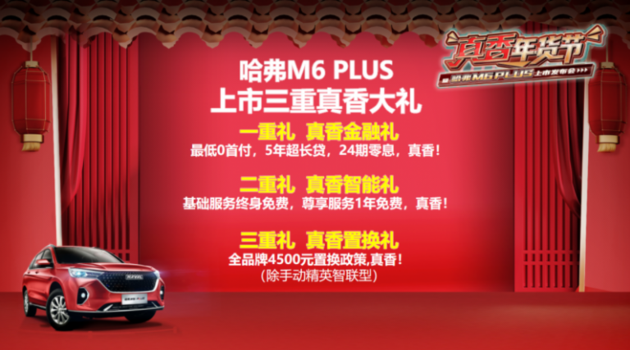 1月6日,备受瞩目的“新超值家用SUV”——哈弗M6 PLUS正式上市,活动以真香年货节形式呈现,这不仅是中国车企首个场景叙事型线上发布会,更是一场别开生面的年货盛宴。新车共有5款配置供消费者选择,售价区间为7.19-9.29万元。而用户现在购车还可享受三重真香大礼: