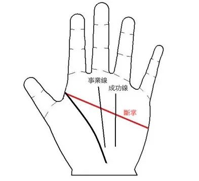 断掌是手相中非常罕见的一种富贵手相。人的手掌通常会有三条主要纹线,那就是生命线、感情线和智慧线。如果其中二大掌纹线,即感情线和智慧线合而为一,横贯于手掌中,横纹将手掌一分为二,就称为断掌,手相学中又叫做“通贯纹”。这种人通常具有强运势,头脑灵活,富有魅力,擅长把握机会,如有事业线及太阳线,必在财富及权力上大获成功。