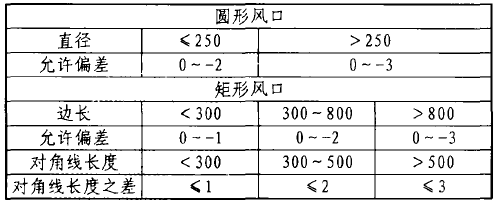 a:矩形(包括方形)风口的尺寸允差风表1。