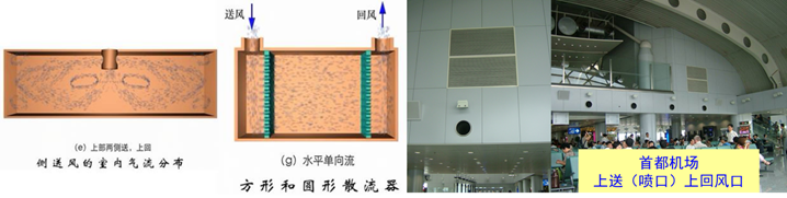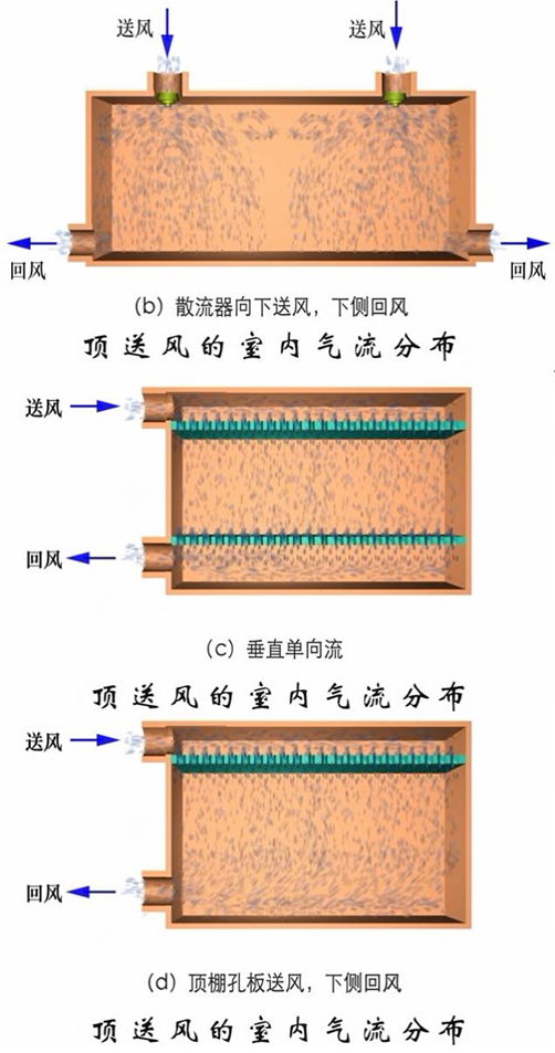 适用场合:对于那些因各种原因不能在房间下部布置风口的场合是相当合适的。注意:防止气流短路现象的发生。