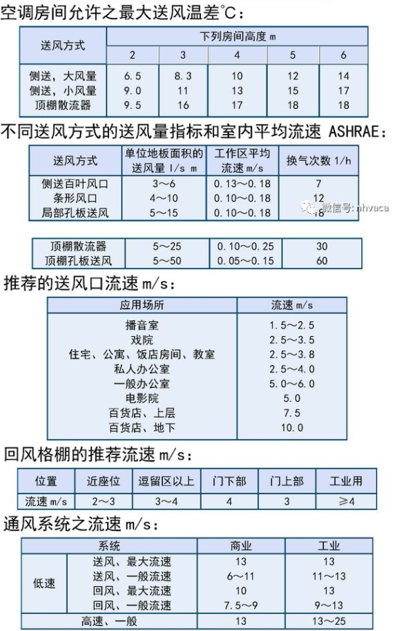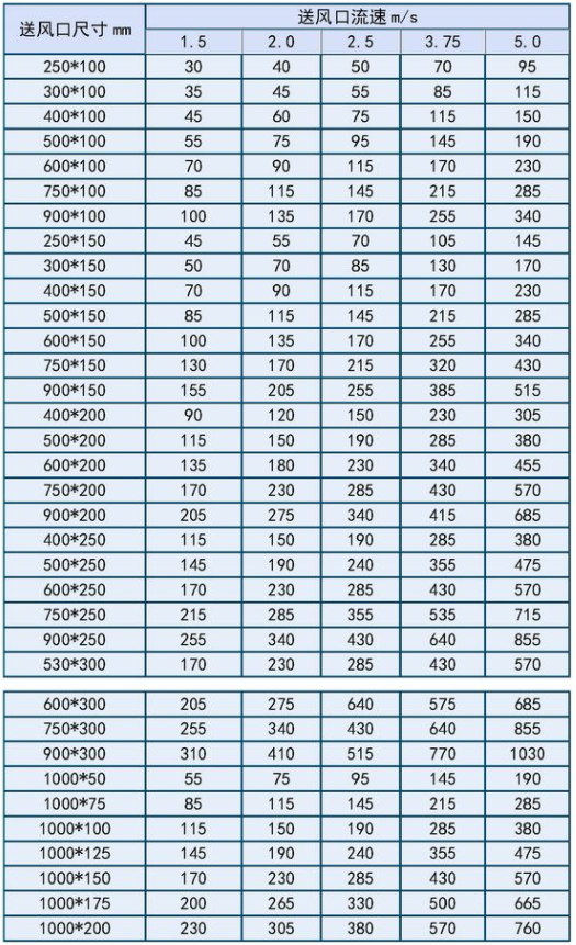 送风口的出风速度,一般的取值范围为2~5m/s;回风口的速度一般限制在4m/s以下。