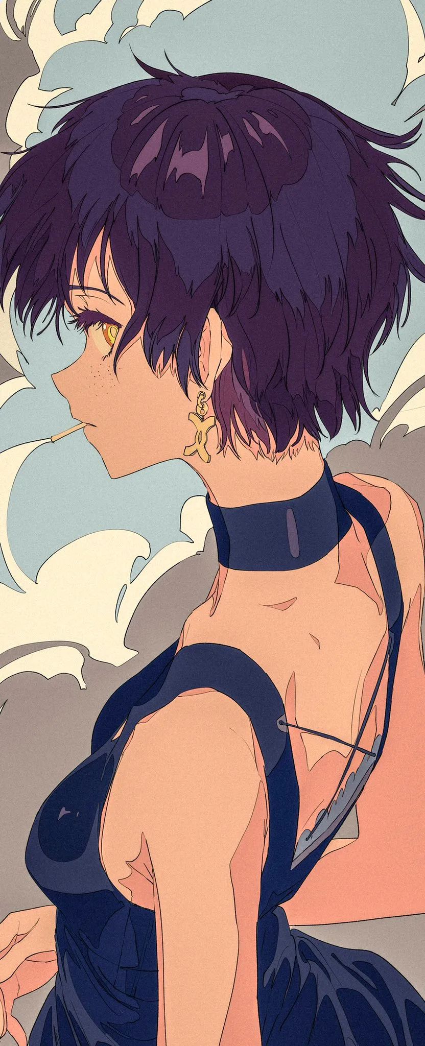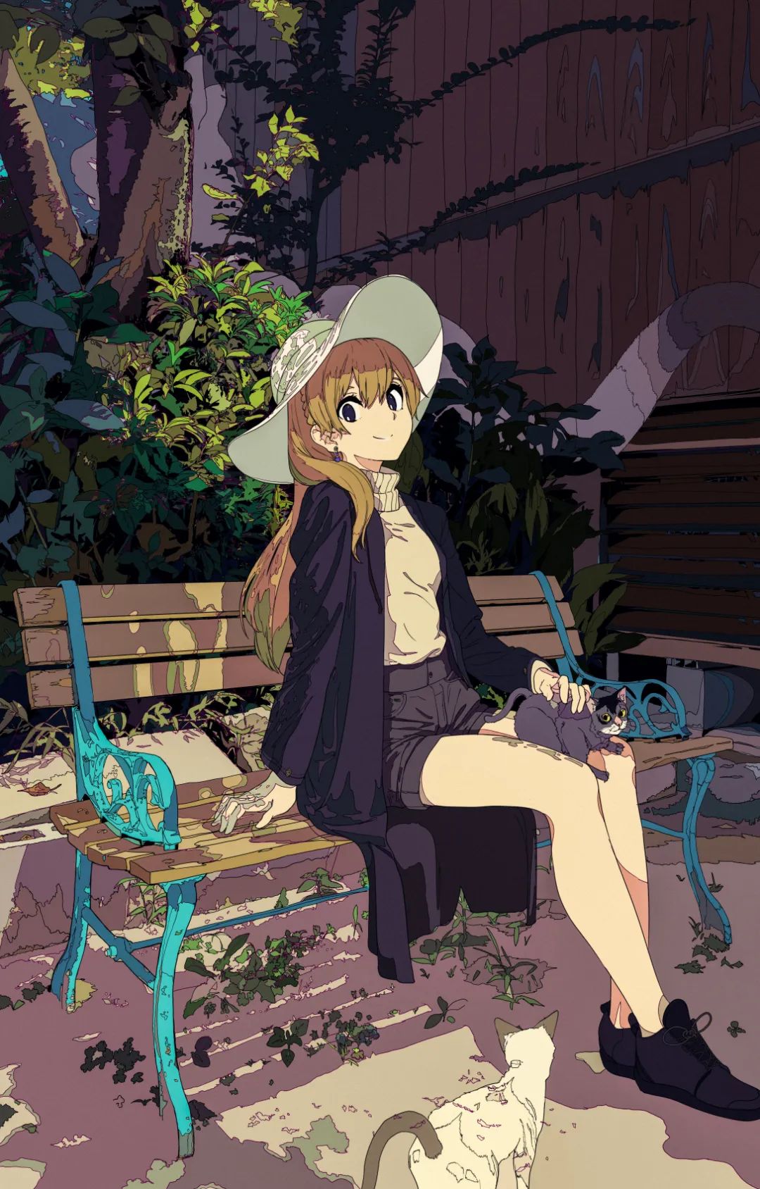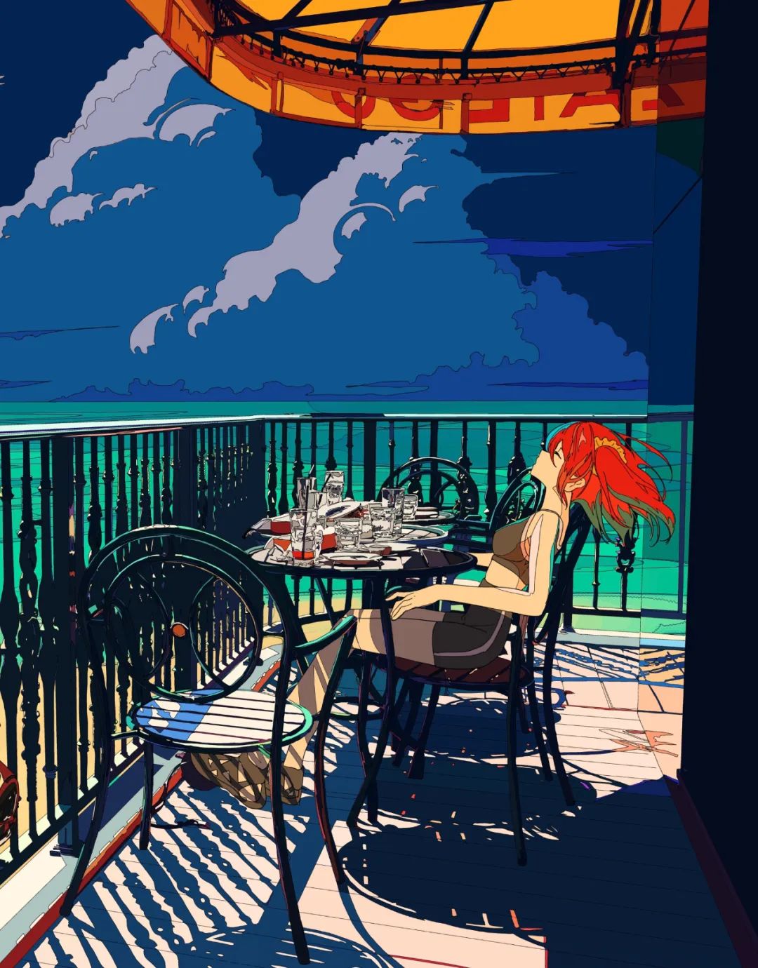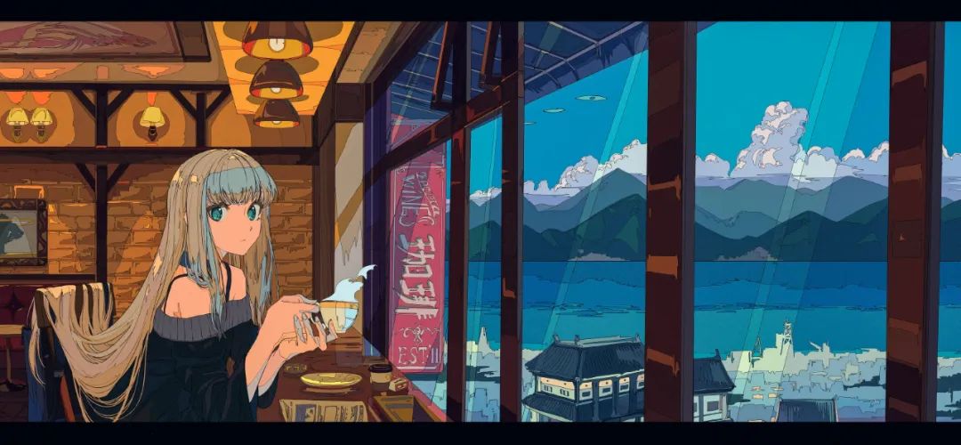 一开始,他的平涂线条都比较简洁,16年他开始刻画背景,并在人物和背景上加入了一些线条。