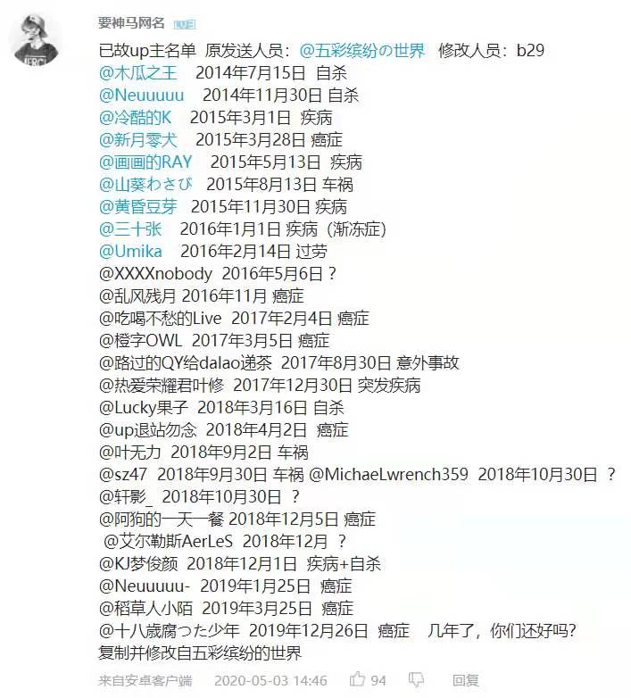 前段时间,b站上线了纪念账号功能。事情一出,有网友列出了纪念账号名单。