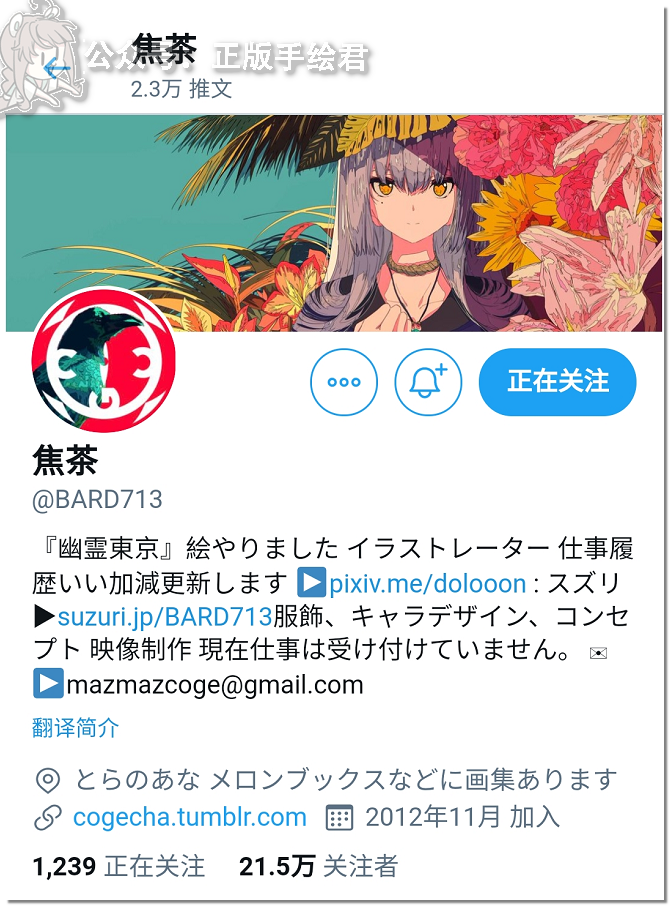 今天,在群里和朋友圈都看到有人提到了一件悲伤的事,那就是日本画师焦茶去世的消息。