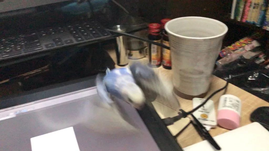 另外,他笔下还有不少带翅膀的角色,他家里也养了带翅膀的宠物——一只蓝色小鹦鹉。